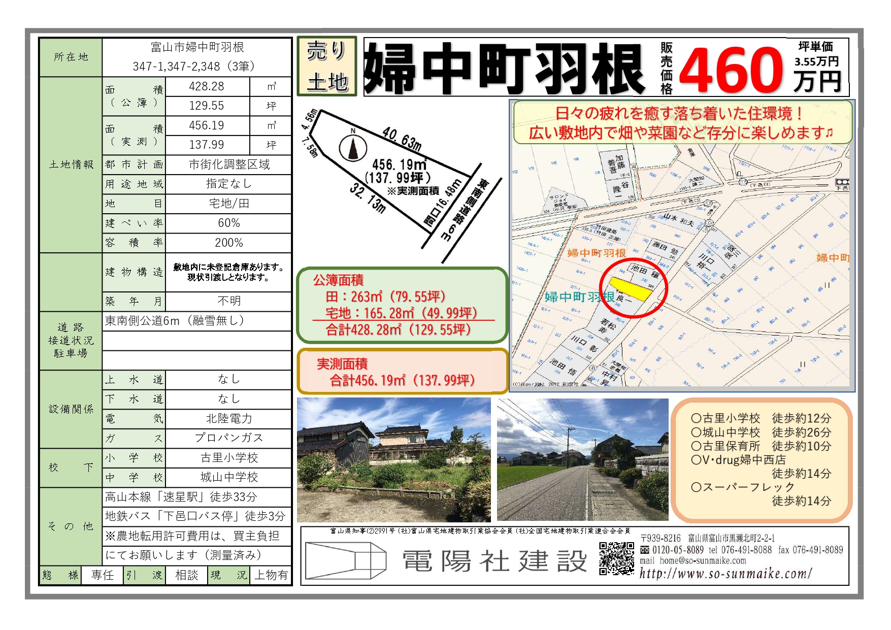 | 物件所在地 | 富山市婦中町羽根347-1、347-2、348 |