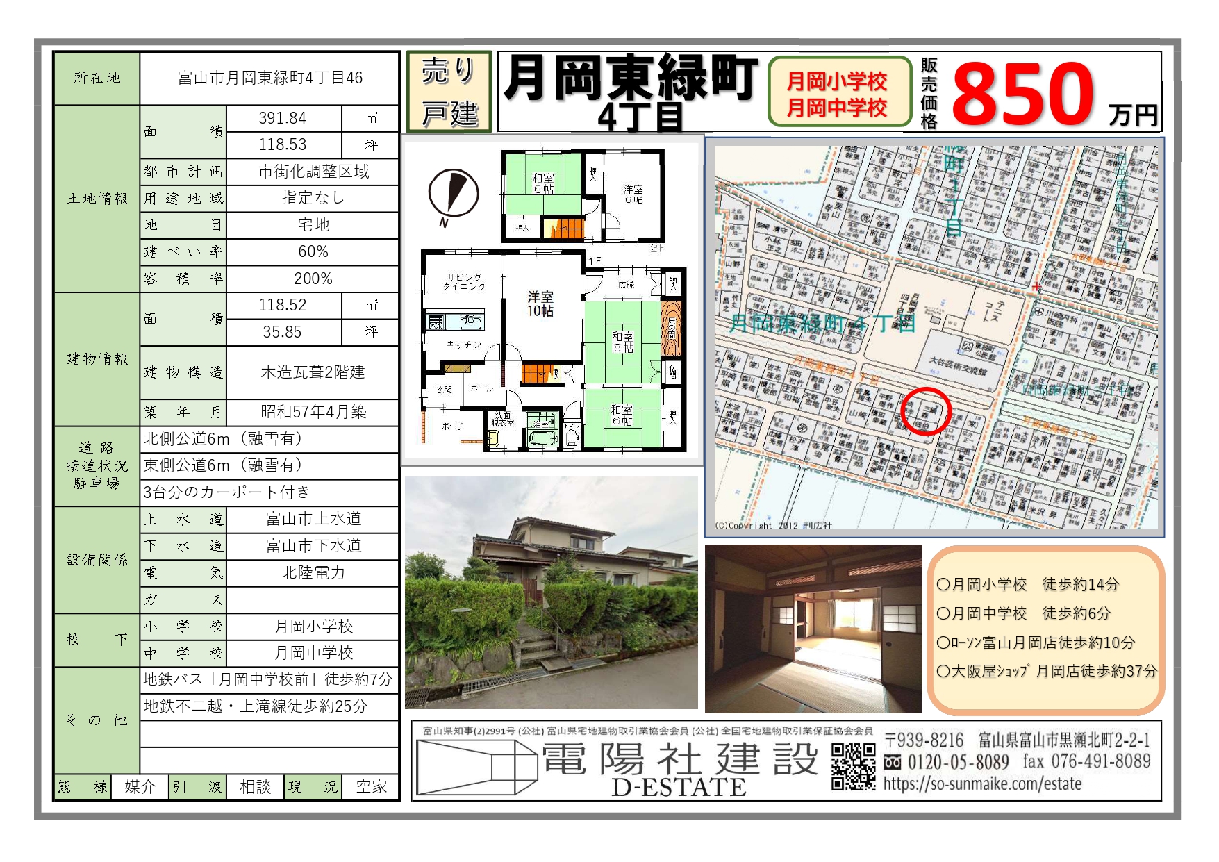 | 設備/ライフライン等 | 富山市上下水道 北陸電力 |