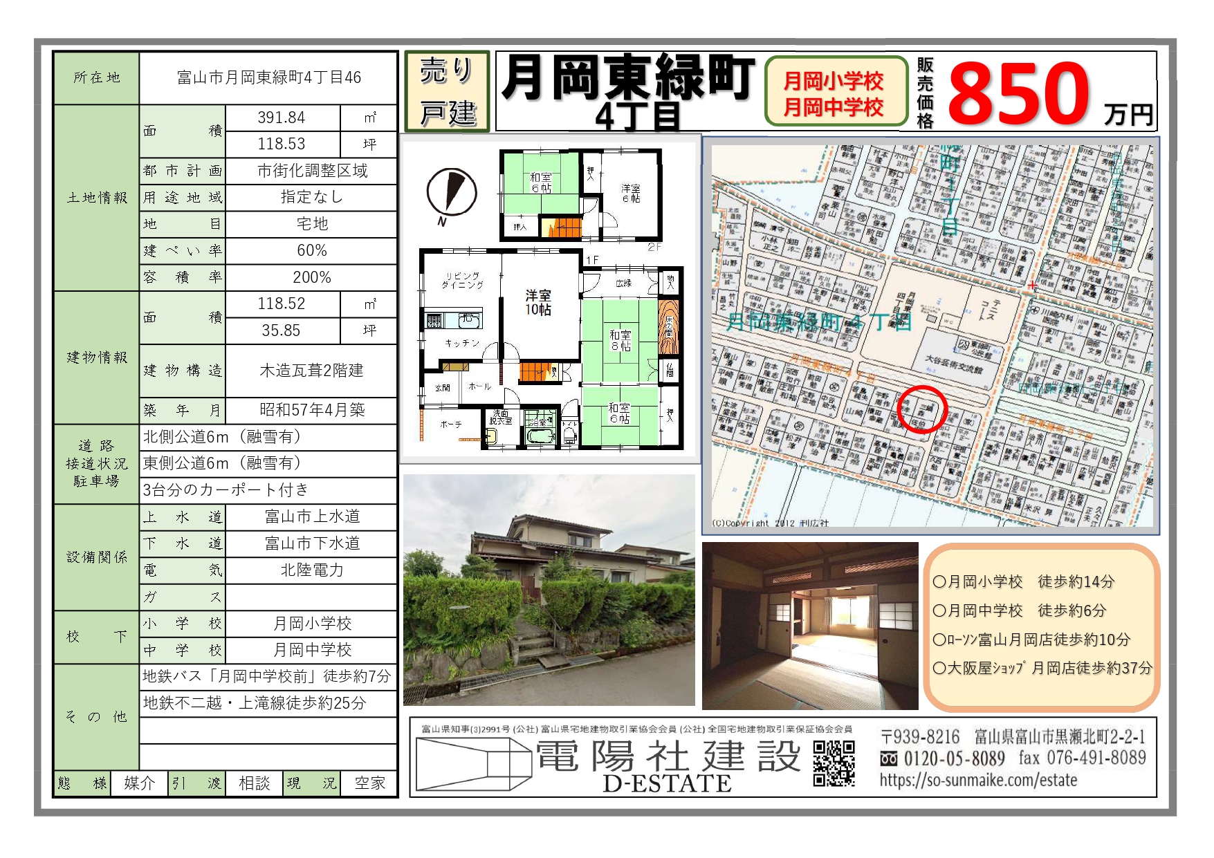 | 最寄り駅/バス停 | 地鉄バス「月岡中学校前」徒歩約7分 |