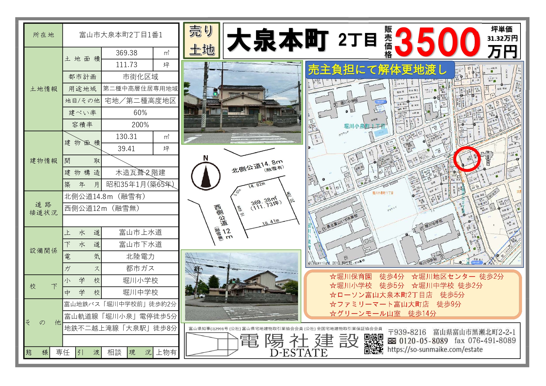 | 物件所在地 | 富山市大泉本町2丁目1-1 |
