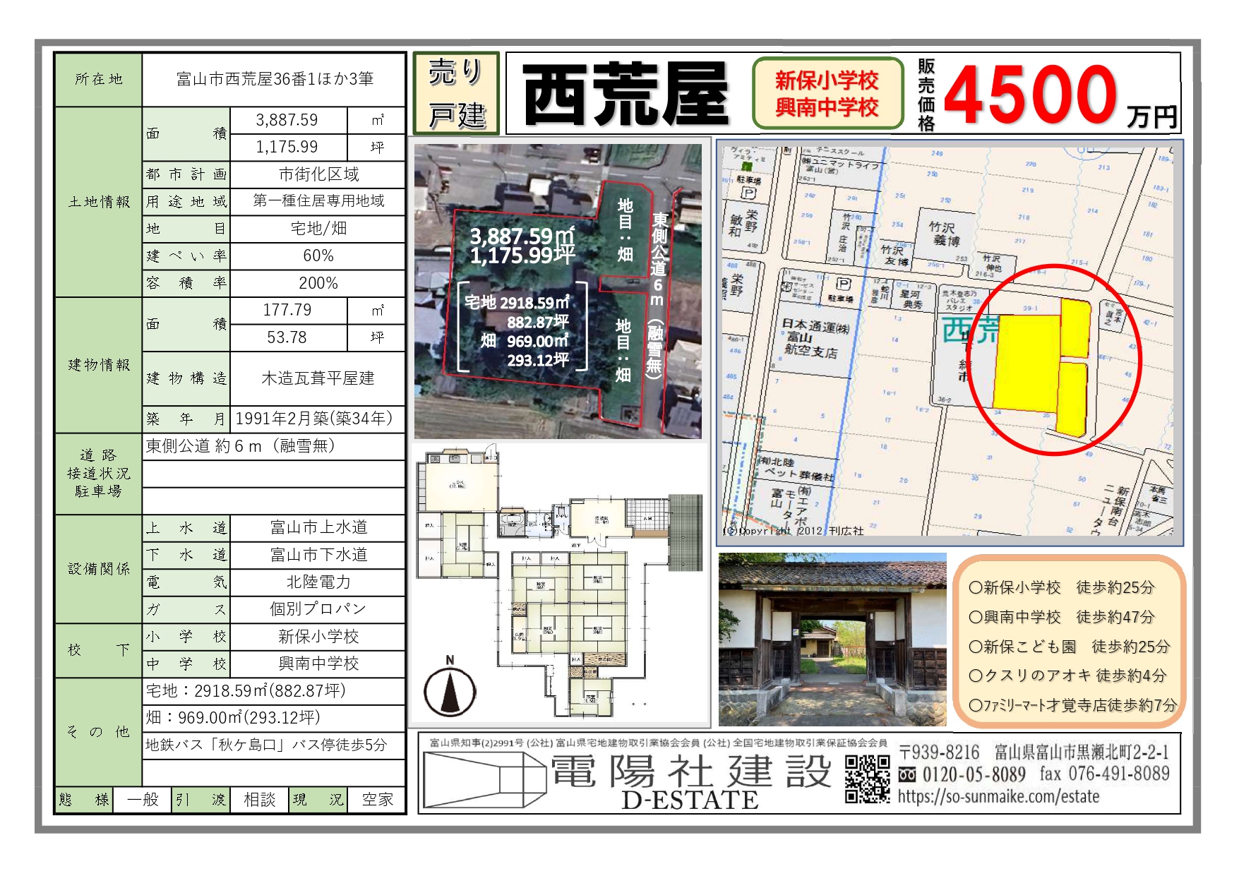 | 備考 | 宅地:2918.59㎡(882.87坪) 畑:969.00㎡(293.12坪) |