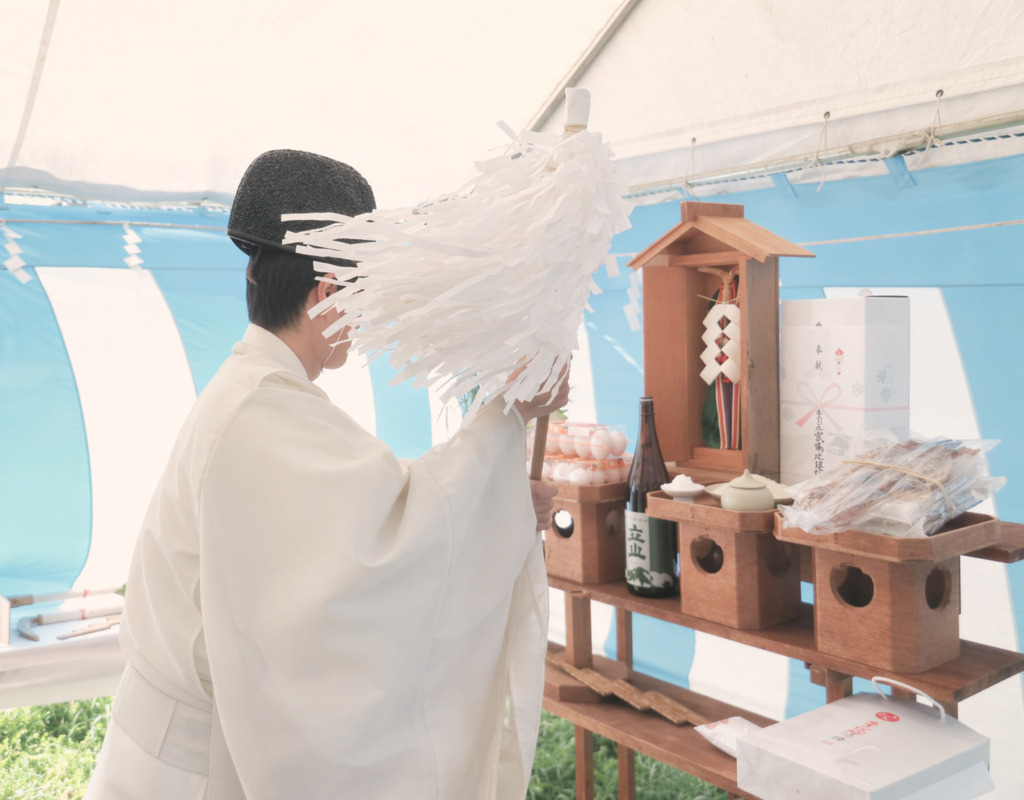 桜の花びらが舞い散るなか、4月11日に地鎮祭を無事に執り行いました。